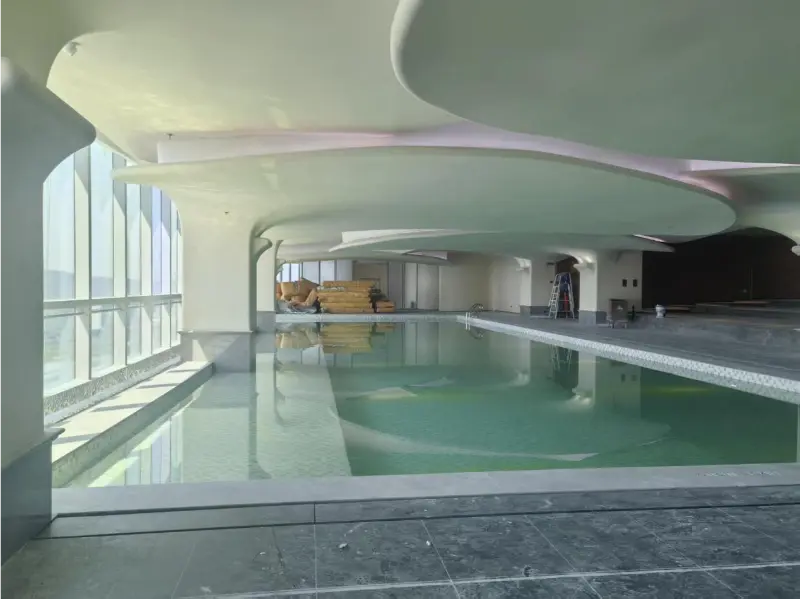 Sistemul de piscine de mare altitudine al hotelului este îmbunătățit prin aplicareaBluewayTehnologia pompei de caldura pentru piscina. Conceput pentru eficiența energetică și controlul precis al temperaturii, sistemul Blueway asigură că apa din piscină rămâne la o temperatură confortabilă și constantă în toate anotimpurile.